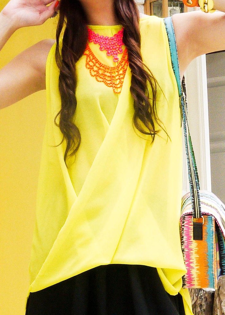 Яркие украшения и галантерея желтого цвета оживит любой наряд и раставит цветовые акценты. Желтая сумочка, например, отлично поддержит в одежде летнюю идею, откажитесь от больших сумок в пользу клатчей с интересным декором и фурнитурой.